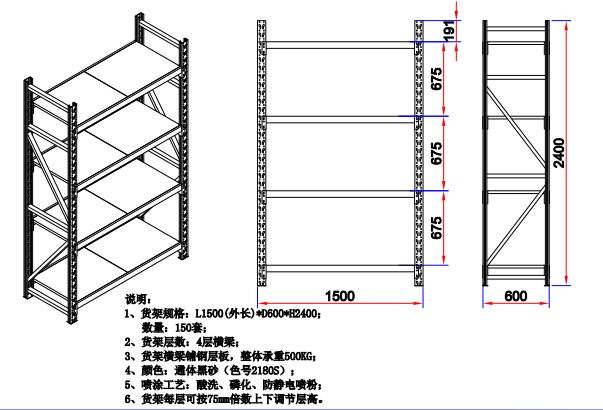 貨架每層可按75mm倍數(shù)上下調(diào)節(jié)層高